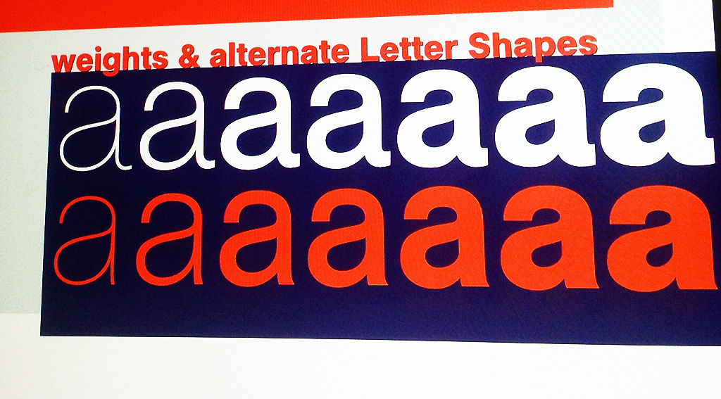 Everything. The entire Typeface has been redrawn based on countless different Versions of Helvetica, Akzidenz Grotesk and even Univers, to incorporate everything that I find beautiful, functional. And at the same time ditching everything I don't like. The rounded Dots are based on photographs and brochures of Target Helvetica. The letters and numbers are redrawn, made softer, rounder, friendlier - and on occasion - even more square. The lowercase a in Helvetica is missing the stem in the Bold weight. This always bothered me greatly. I redrew the shape pf the lowercase bold a to match that of the regular style. Interestingly, it was not until later that I realized Target Helvetica did the same thing. Finally, I spaced and kerned the entire typeface based on my own experiences and conventions, simplifying and unifying the process.